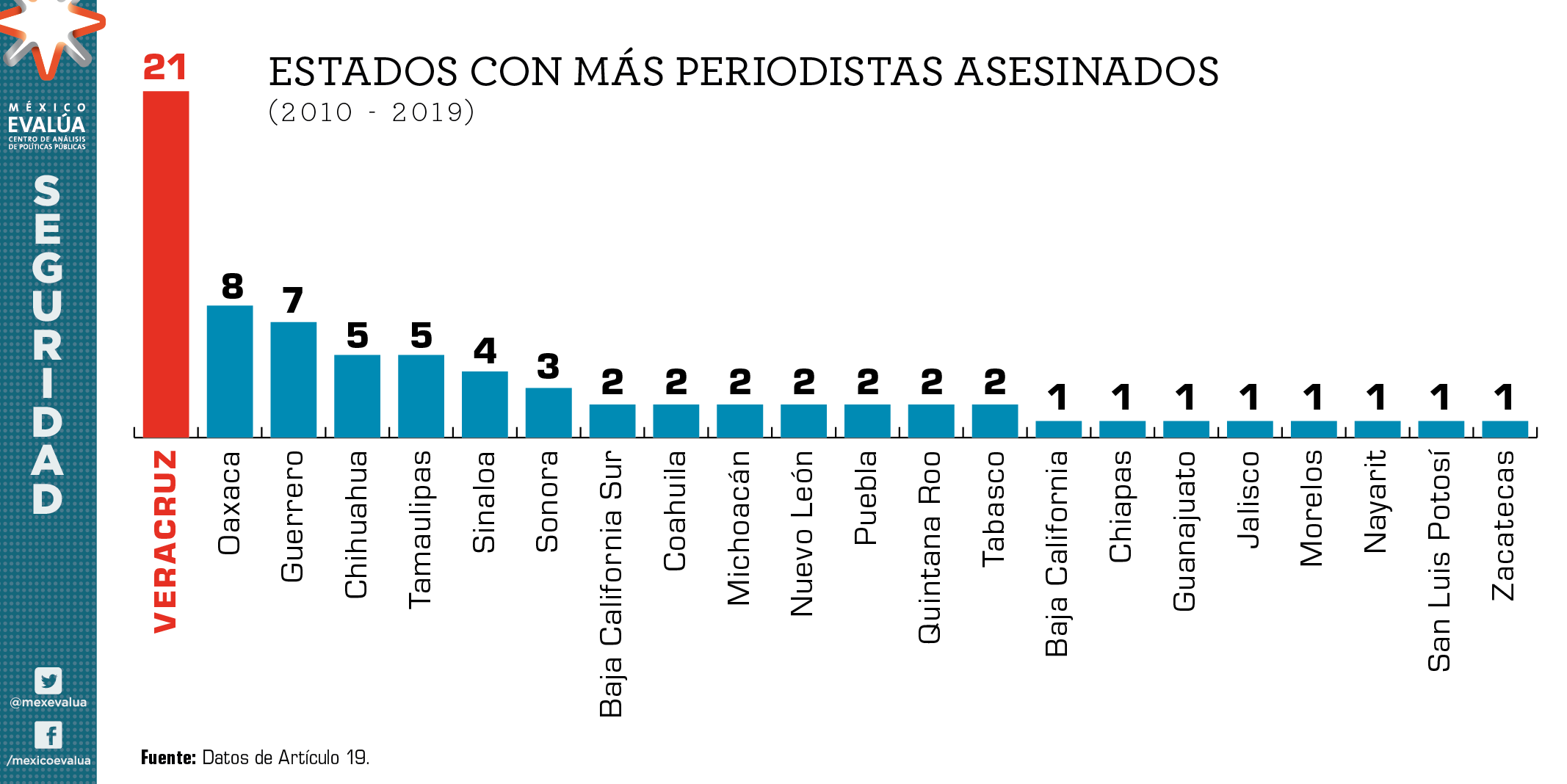 No es secreto que Veracruz tiene un serio problema de violencia letal. Por ejemplo, ejercer el oficio de periodista es una tarea que resulta de alto riesgo en esta entidad, debido a que con 21 víctimas Veracruz ocupa el primer lugar de las entidades con más periodistas asesinados[5] y el segundo puesto en periodistas desaparecidos[6]. Ante tal escenario, a uno no le queda más que dudar sobre la libertad de prensa en la entidad.