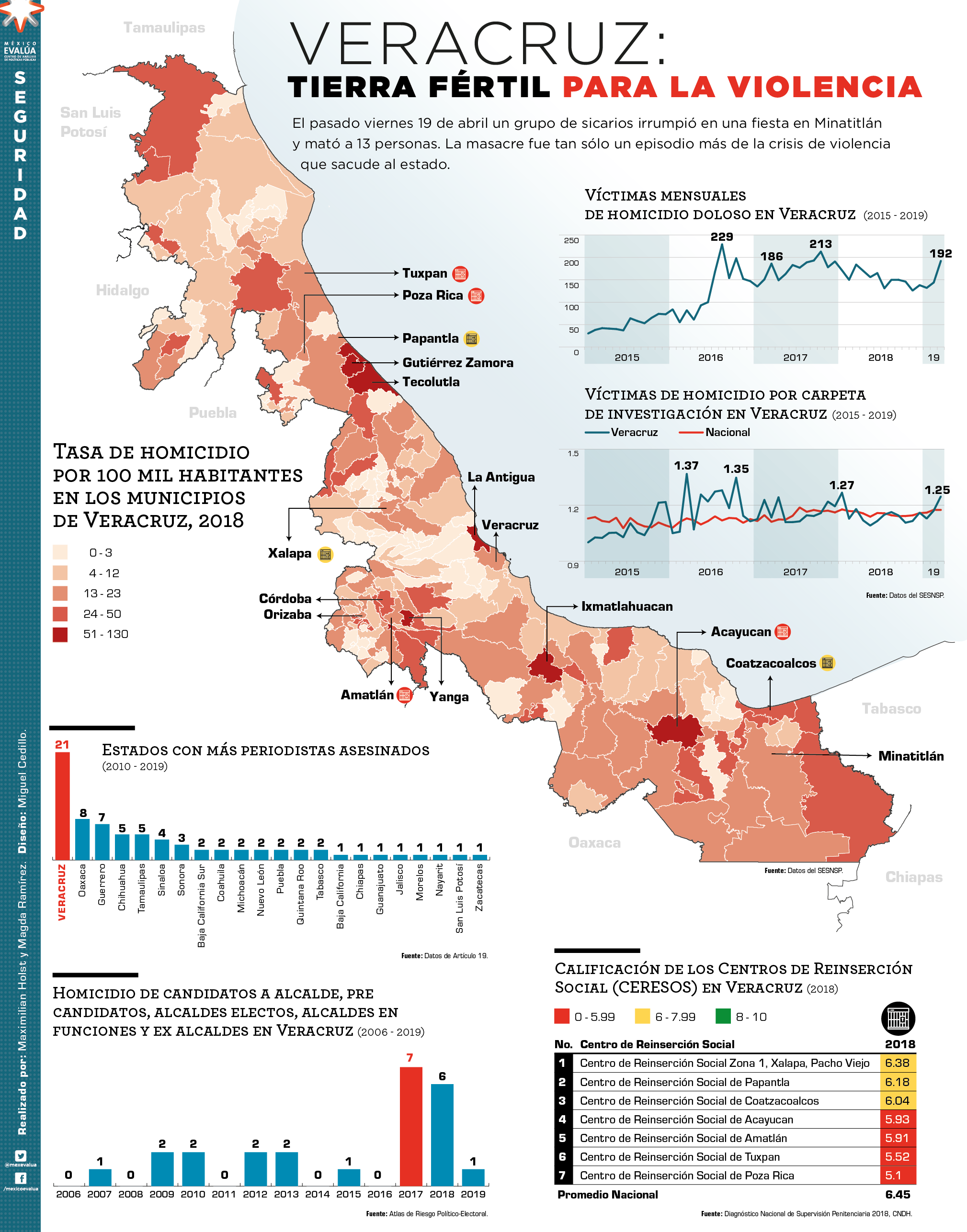 La masacre de 13 personas en Minatitlán a mediados de abril no fue un hecho aislado y esto hace suponer que la situación en Veracruz no mejorará en el corto plazo. Las instituciones de seguridad y de justicia tienen claras deficiencias. En este sentido, Veracruz tiene varias tareas pendientes: los cuerpos de seguridad requieren profesionalización y es necesario reducir la impunidad mediante el reforzamiento del sistema penal acusatorio.