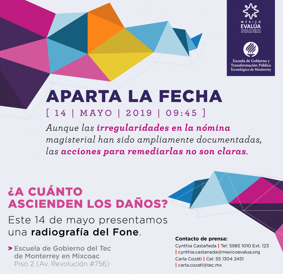 La cita es el martes 14 de mayo a las 9:45 hrs. en el segundo piso de la Escuela de Gobierno del Tecnológico de Monterrey en Mixcoac.