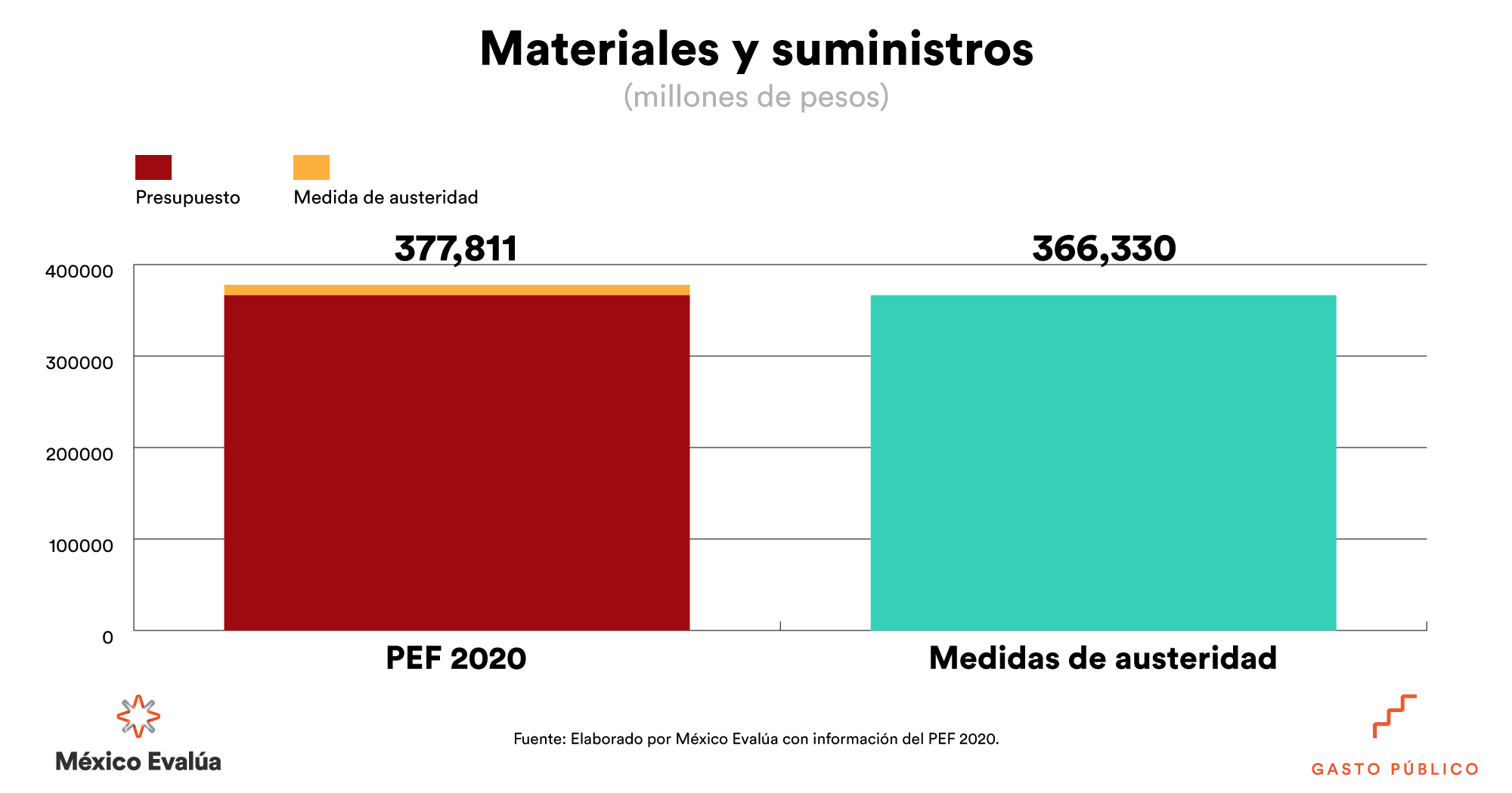 Por su parte, el capítulo de Materiales y suministros tendrá un recorte de 11 mil 378 mdp. Alcanzará los 366 mil 433 mdp, después de aplicar las medidas de austeridad.
