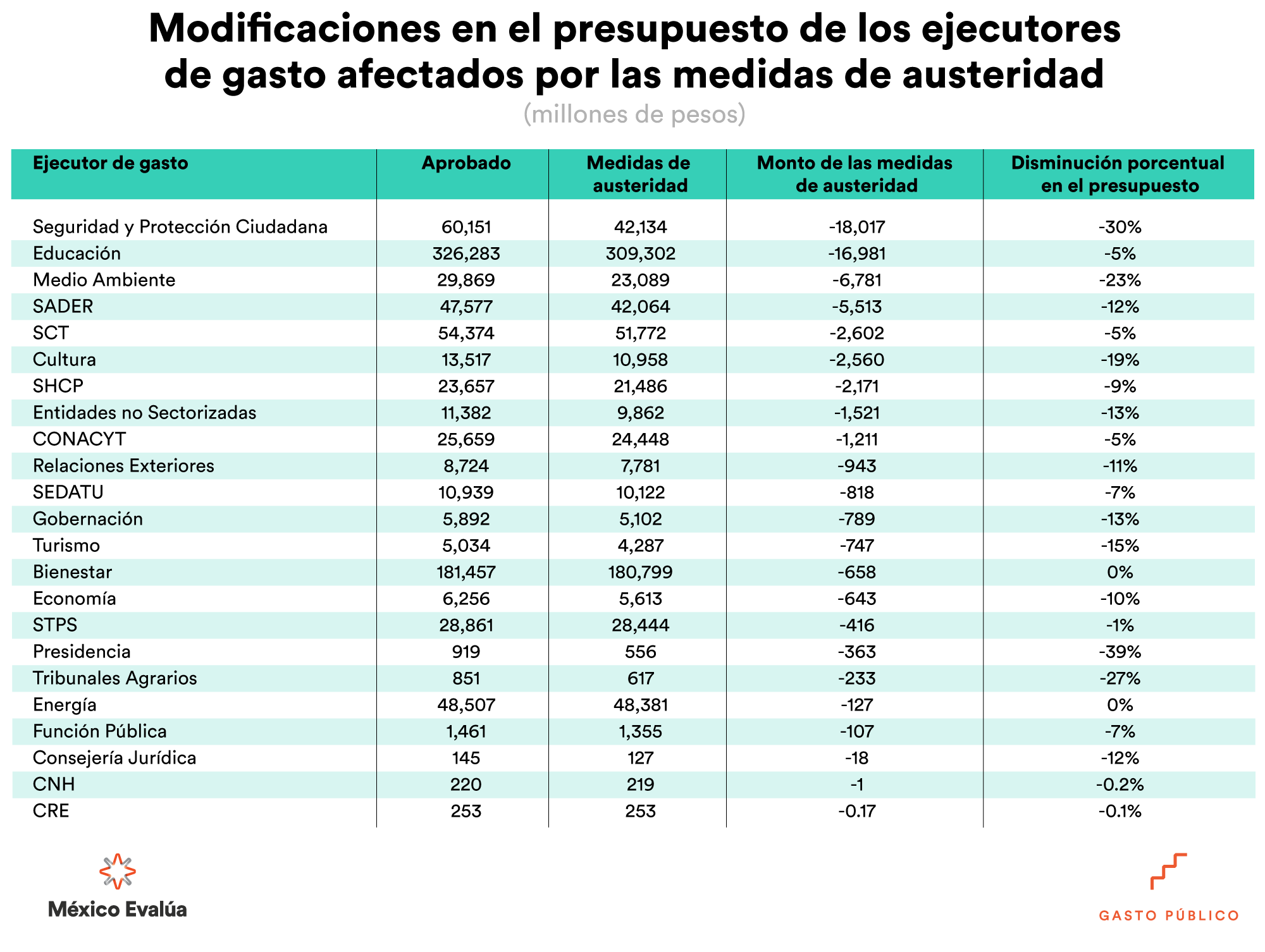 Es importante destacar que las medidas de austeridad tendrán un impacto diferenciado en el presupuesto total de los ejecutores de gasto.
