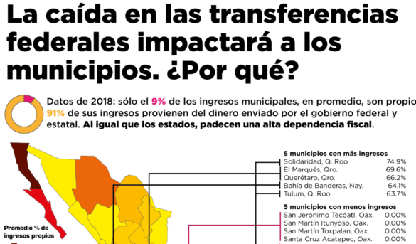 La dependencia fiscal de los municipios es particularmente crítica. El 91% de sus ingresos provienen del dinero enviado por el gobierno federal y los estatales. Por eso, si los fondos de transferencias como Fortamun y Fortaseg disminuyen, el impacto para ellos es considerable.