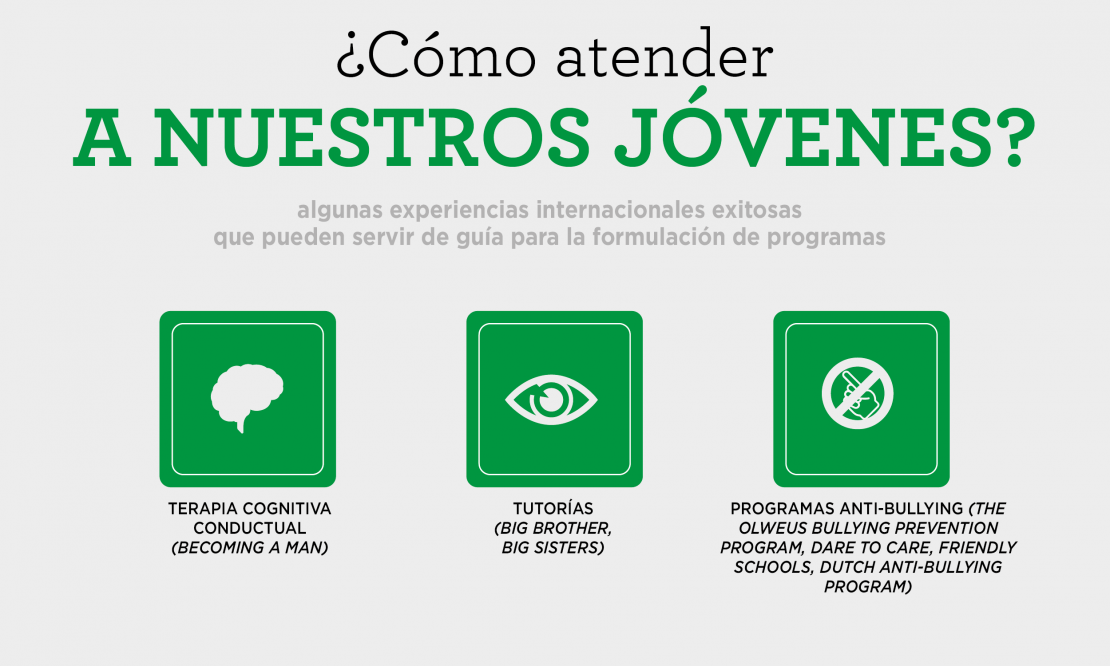 Además, estos programas focalizan las intervenciones según la edad de los estudiantes. La supervisión y las sanciones funcionan mejor con los niños menores de 10 años. En cambio, las intervenciones que promueven el aprendizaje social, desarrollo de habilidades y espacios de reflexión son más efectivas en alumnos mayores de 12 años.