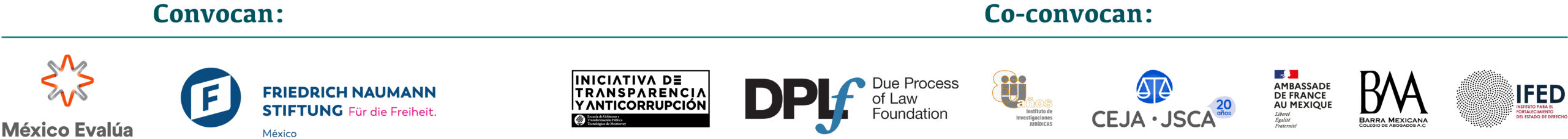 Este foro cuenta también con el apoyo del Instituto de Investigaciones Jurídicas de la UNAM; la Embajada de Francia en México; la Barra Mexicana de Abogados; el Instituto para el Fortalecimiento del Estado de Derecho, IFED; la Iniciativa de Transparencia y Anticorrupción de la Escuela de Gobierno y Transformación Pública, del Instituto Tecnológico de Monterrey; Due Process of Law Foundation, y el Centro de Estudios de Justicia para las Américas, de la Organización de los Estados Americanos.