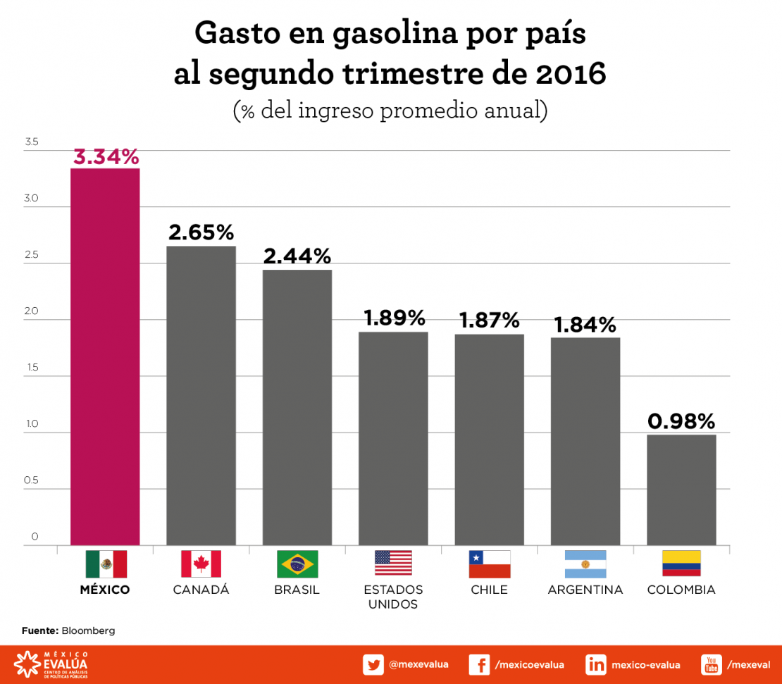 Gasto en gasolina por país al segundo trimestre de 2016