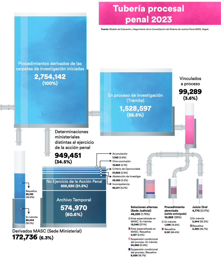 En última instancia, Hallazgos 2023 representa una contribución de México Evalúa a las instituciones del Estado Mexicano. Su propósito es orientar la implementación de políticas públicas destinadas a mejorar la calidad de la justicia penal, en un sistema que continúa presentando deficiencias significativas. Estas deficiencias, como demuestran los resultados de nuestro estudio, aún sostienen vicios con graves consecuencias para los derechos de las personas.