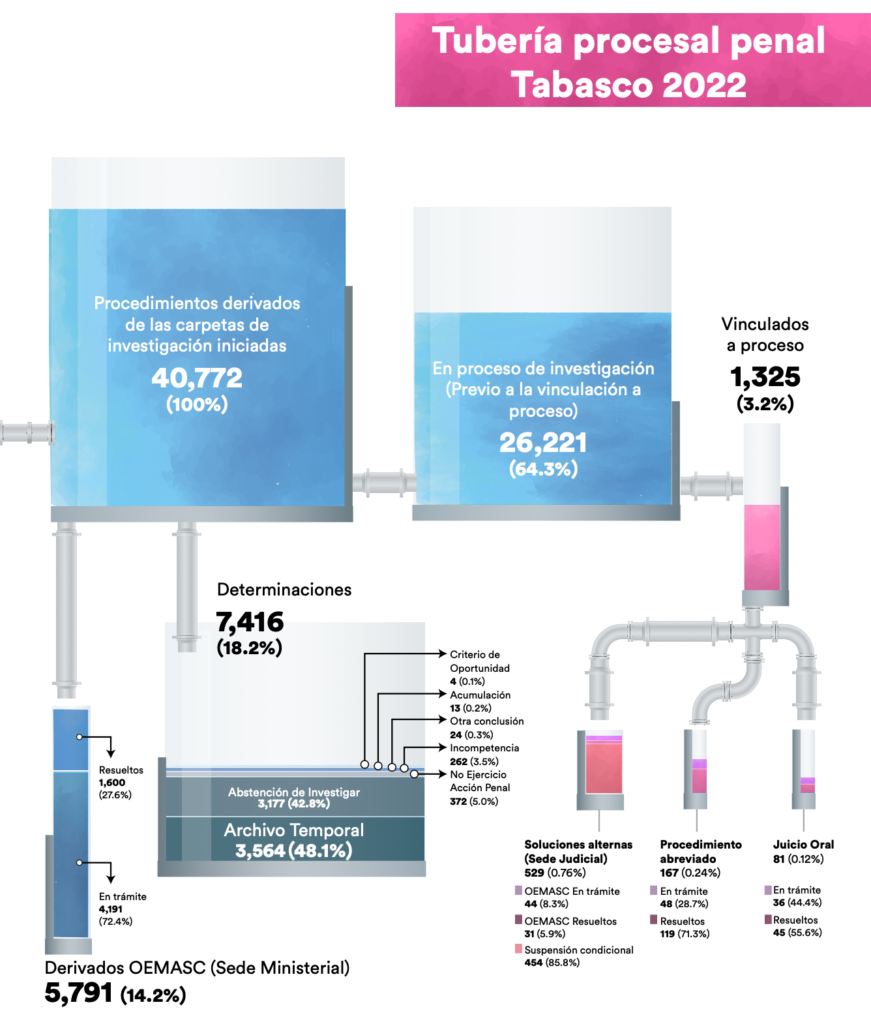 Frente a la inseguridad y la violencia, la sociedad tabasqueña ajusta su vida cotidiana para aprender a vivir en la incertidumbre, pues el gobierno estatal no parece contar con mecanismos ni estrategias efectivas para detener la expansión de la actividad delictiva y mejorar los procesos judiciales. Además, esta entidad también enfrenta desafíos importantes en la protección de los derechos humanos de quienes participan en el proceso penal. Dichos problemas amenazan la viabilidad del sistema de justicia penal (SJP). Es por ello que en este informe local presentamos una evaluación detallada de la situación actual del SJP en Tabasco.