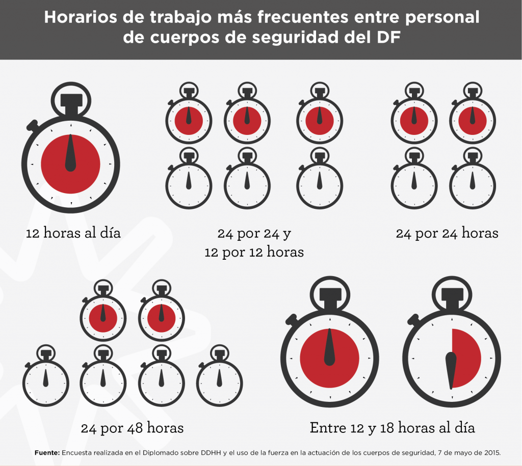 Horarios de trabajo más frecuentes entre personal de cuerpos de seguridad del D. F.