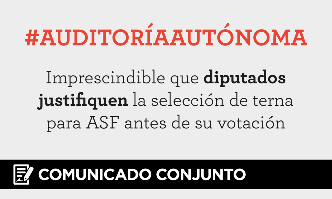 Sin una auditoría autónoma, sin una auditoría que sirva, se seguirá abriendo la puerta a la corrupción y la impunidad que tanto lastiman a los mexicanos. No podemos permitirnos nombramientos que no observen los máximos estándares de transparencia y rendición de cuentas, máxime tratándose de una institución que busca coadyuvar a una verdadera rendición de cuentas, transparente y eficaz del ejercicio del erario. Por ello, insistimos en que es indispensable que el proceso concluya con el mayor respaldo y confianza por parte de la sociedad y, con ello, podamos abonar a la consolidación del Sistema Nacional Anticorrupción. Reiteramos nuestra exigencia a que los legisladores ejerzan su responsabilidad constitucional con transparencia, claridad, profesionalismo y pertinencia en un nombramiento fundamental para el rumbo democrático de nuestro país como lo es el Auditor Superior de la Federación.