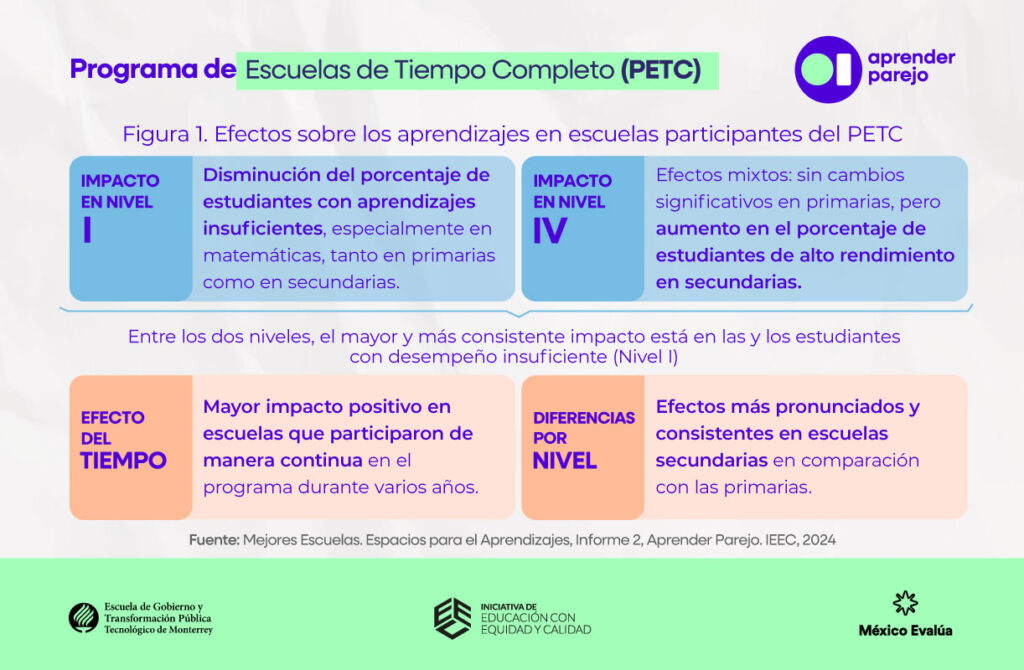 Acortar la jornada permitió liberar recursos humanos y financieros para expandir los servicios educativos, lo que facilitó el uso de turnos vespertinos en escuelas con alta demanda. Sin embargo, al concentrarse en la expansión de la cobertura, la autoridad descuidó los esfuerzos por garantizar la calidad de los aprendizajes alcanzados por la mayoría de las y los estudiantes en el país.