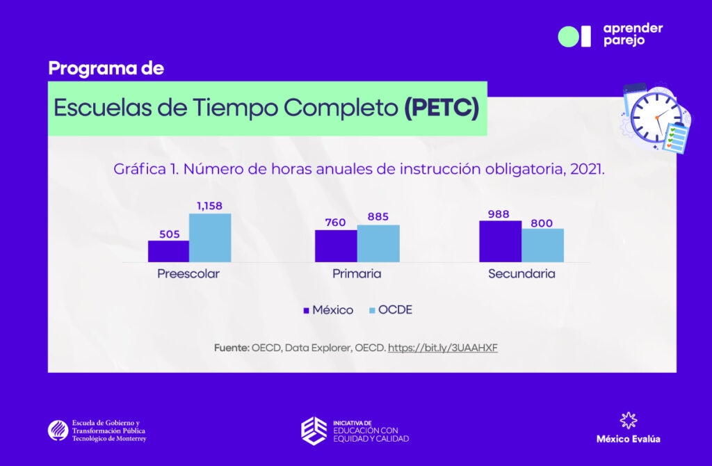 Un ejemplo de los desafíos en aprendizajes lo refleja la última prueba PISA realizada por la Organización para la Cooperación y Desarrollo Económicos (OCDE). En México, dos de cada tres estudiantes tienen dificultad con matemáticas y este número es dos veces mayor que el promedio de los países de la OCDE. Una herramienta para combatir ese rezago educativo es extender el tiempo que las y los estudiantes pasan en las escuelas; pero esta medida debe estar alineada con otras acciones, como la implementación de propuestas pedagógicas que permitan aprovechar ese tiempo adicional en el aula. Esto no excluye las acciones formativas que se quieren integrar para prevenir adicciones, promover la salud bucal y las actividades culturales o deportivas, por el contrario, hay posibilidad de potenciar unas y otras si se formulan orientaciones claras.