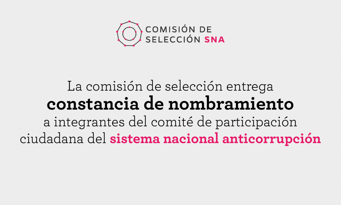 - La Comisión de Selección entregó sus constancias de nombramiento a los cinco integrantes del Comité de Participación Ciudadana del Sistema Nacional Anticorrupción.