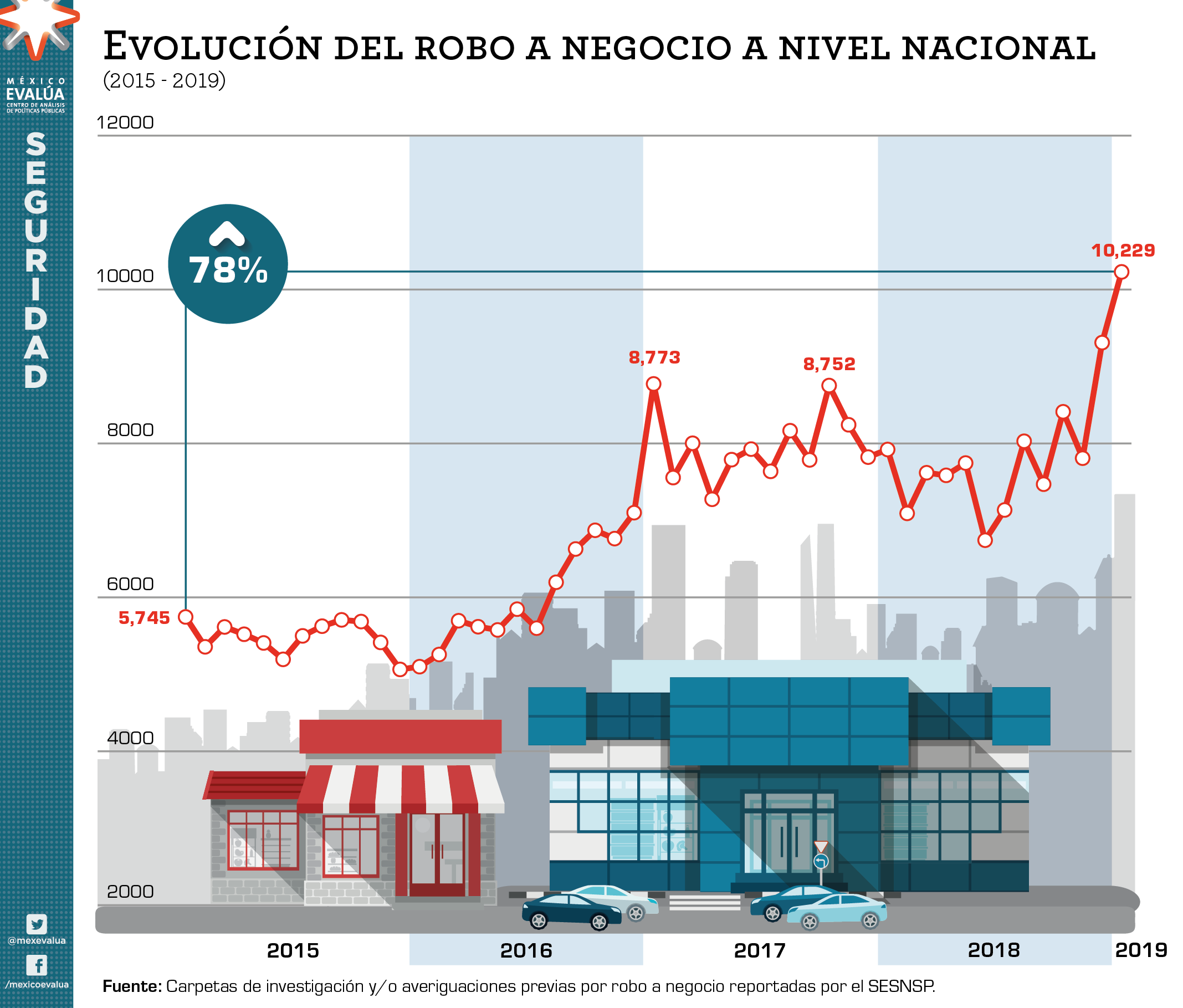 [1] EL SESNSP es la fuente oficial que publica mensualmente las cifras de robo a negocio.