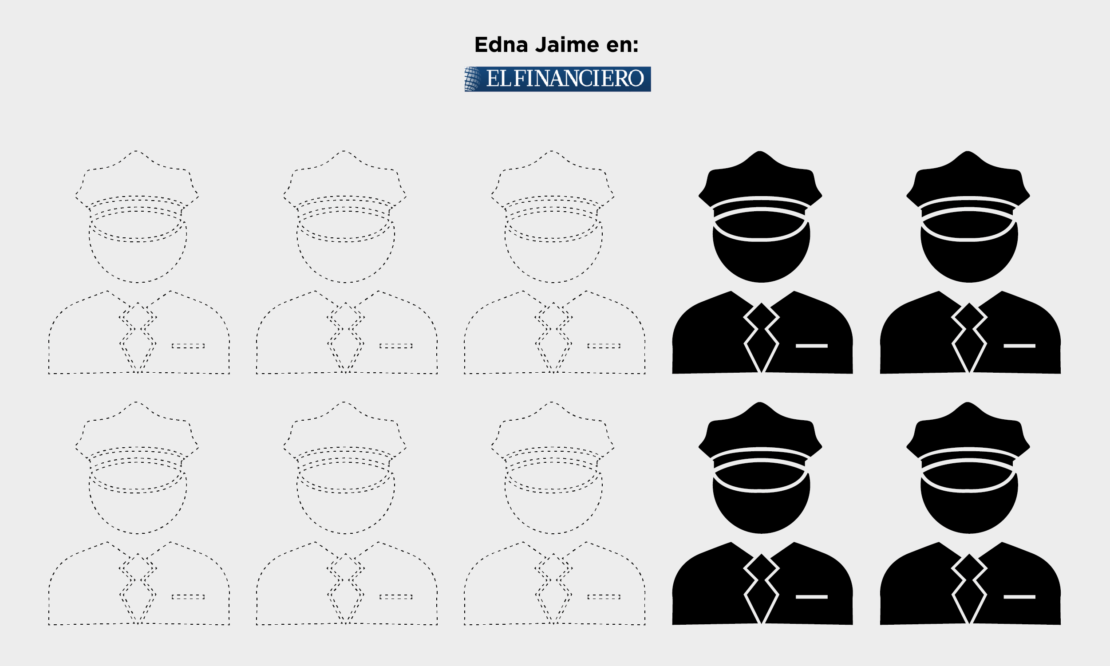 Primero, faltan 115,943 elementos de policías (el 50.86%)  para alcanzar el estándar mínimo de 1.8 policías por cada mil habitantes. Aunque en términos de seguridad la cantidad no implica la calidad, estamos aquí frente a una penuria insostenible.