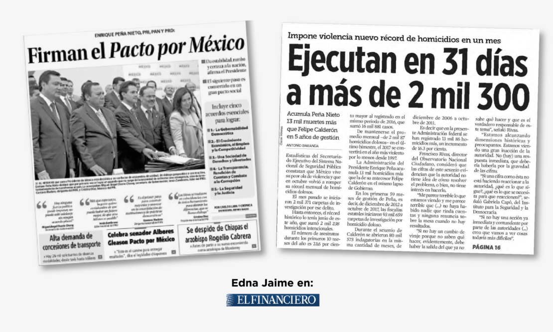 En el Plan Nacional de Desarrollo planteado por este gobierno se hacen propuestas ambiciosas en el tema de la violencia y la inseguridad. Por las metas que se plantearon, se ve que había confianza en el equipo entrante de que podían lidiar con el problema sin mayor dificultad. Así como Fox supuso que llegando él a Los Pinos el país mejoraría en automático, así también ellos supusieron que, una vez a cargo, la violencia se domesticaría. No fue así.