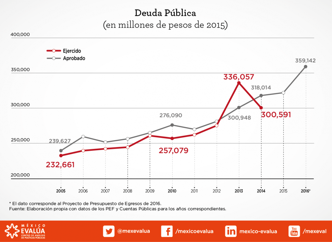 Uno podría pensar que dar prioridad al pago de pasivos puede ser conveniente, pero es necesario apuntar que dadas las amplias facultades que la SHCP tiene para cambiar el gasto aprobado, en realidad no hay garantía de que, durante la ejecución del presupuesto 2016, los recursos que supuestamente van a pagar la deuda realmente se destinen a ese fin. Así, el esfuerzo de recortar 221 mil millones al gasto programable puede terminar siendo mucho menor.