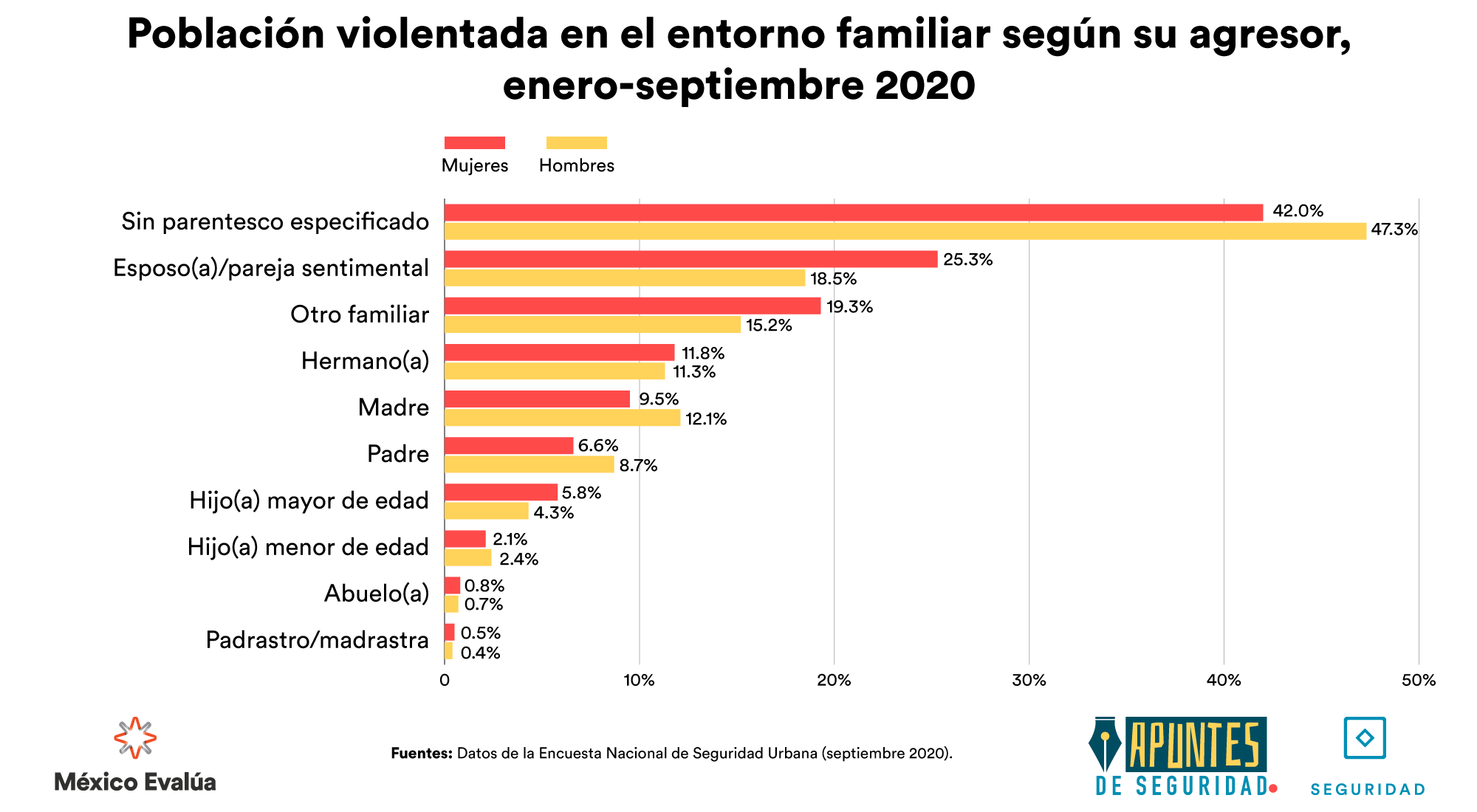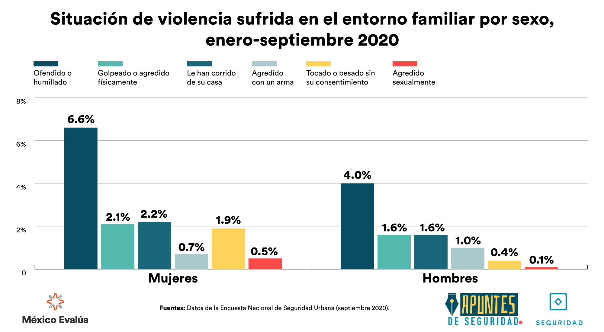 Para comprender mejor cómo impacta este tipo de violencia en la vida de las y los mexicanos, analizamos los datos de la ENSU —que por primera vez estima el número de mujeres y hombres que fueron víctimas de violencia en el entorno familiar[1] en 85 ciudades del país— y los enmarcamos en las siguientes preguntas: